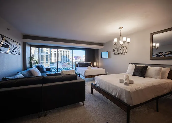 ラスベガスの中心に位置する広々とした60m²のIconic Vegas Views - 6 Comfy Beds, No Resort Fees, Center Strip! ラスベガスは、ザ・コスモポリタンから徒歩で5分です。 ビジネスとレジャーの両方の目的でWiFiを利用できます。